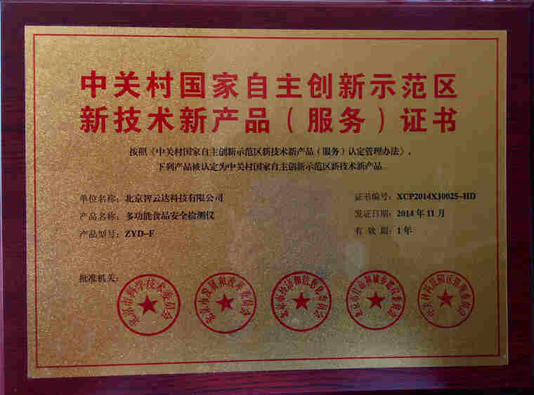 北京智云達科技股份有限公司自2005年開始從事食品安全快速檢測產(chǎn)品的研發(fā),設有專門的研發(fā)機構(gòu),建立了一支以食品安全檢測、化學分析、計算機軟硬件以及光學儀器開發(fā)為主的,由多名博士、碩士為核心的高科技人才隊伍。研發(fā)人員具有較深的理論造詣和豐富的實踐經(jīng)驗,是前沿專業(yè)技術和應用實踐高度結(jié)合的研發(fā)隊伍。同時,通過與中國農(nóng)大食品學院、北大化學學院、國家糧食局標準質(zhì)量中心、疾控中心等高校、科研單位的教授、專家的廣泛合作,研發(fā)出六大系列食品安全快速檢測產(chǎn)品:食品安全快速檢測試劑盒、檢測箱、食品(農(nóng)產(chǎn)品)檢測儀器、干化學試紙、獸藥殘留膠體金快速檢測卡及抗生素檢測試劑盒。公司目前已取得各種專利共18項,以及26項計算機軟件著作權登記證書,擁有6大類400余種產(chǎn)品及技術。      尤其值得一提的是,在